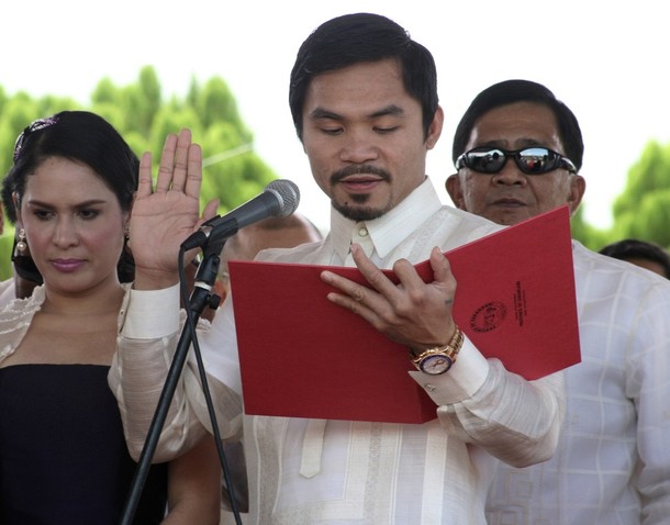 Один из лучших боксеров мира вне зависимости от весовой категории 28 июня на Филиппинах дает присягу конгрессмена. Напомним, что в мае этого года Пакьяо одержал убедительную победу на выборах и завоевал место в Конгрессе Филиппин. Количество отданных за Пакьяо голосов оказалось почти в два раза больше, чем у ближайшего конкурента — бизнесмена Роя Чонгбьяна из влиятельной политической династии, которая на протяжении трех десятилетий правила провинцией Сарангани, где проходили выборы. (Фото Reuters)