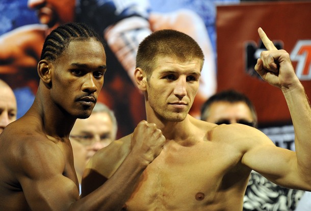 Вчера в Лас-Вегасе состоялась церемония взвешивания участников сегодняшнего боксерского шоу, во втором по значимости поединке которого на ринг выйдет 30-летний россиянин Дмитрий Пирог (16(13)-0(0)-0) против 23-летнего американца Дэниэла Джейкобса (20(17)-0(0)-0) в бою за вакантный титул WBO в среднем весе. Пирог точно уложился в лимит среднего веса, показав на весах 72,574 кг (160 фунтов), а Джейкобс оказался немного легче — 72,121 кг (159 фунтов).