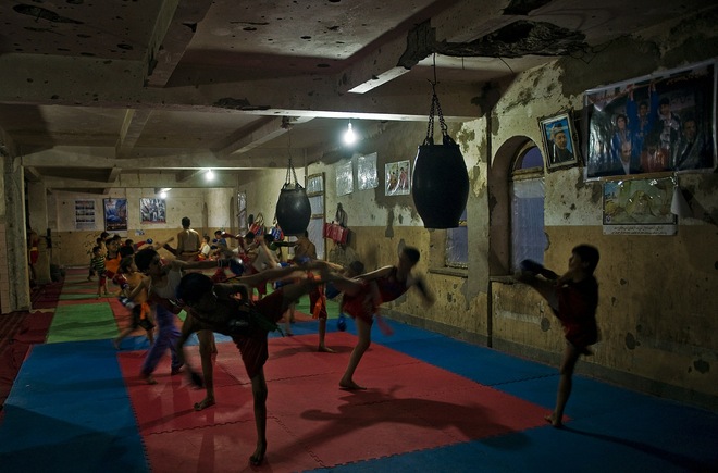 На этом снимке, сделанном 26 сентября в столице Афганистана городе Кабуле, запечатлены афганcкие подростки, занимающиеся смешанными единоборствами.
