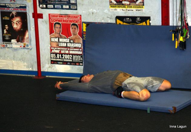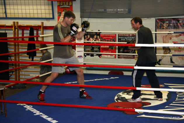 В эту субботу в спортивном зале Universum в Гамбурге (Германия) состоится бой чемпиона Европы Александра Дмитренко с бывшим обладателем этого титула Альбертом Сосновским. Поединок должен был состояться 4 декабря, но по состоянию здоровья Александра бой был перенесен на другой срок: 26 марта. Представители AllBoxing.ru побывали вчера на тренировке и запечатлели несколько ее эпизодов.