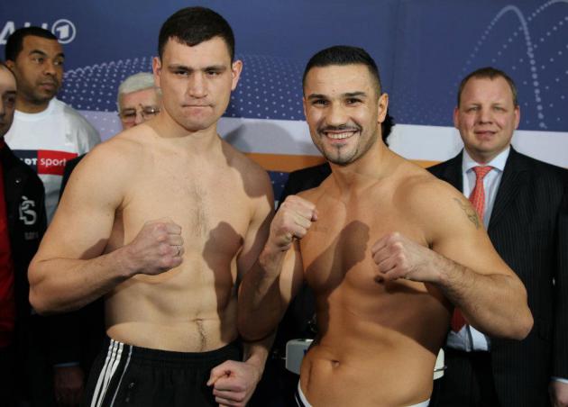 Сегодня во Франкфурте-на-Майне (Германия) состоялась официальная церемония взвешивания участников намеченного на 4 февраля вечера бокса берлинской промоутерской компании Sauerland Event. Запланированы пять боев в первом тяжелом весе и один в полутяжелом, один поединок за титул чемпиона мира по версии IBF и два — за звание чемпиона Европы (фото: Team Sauerland).