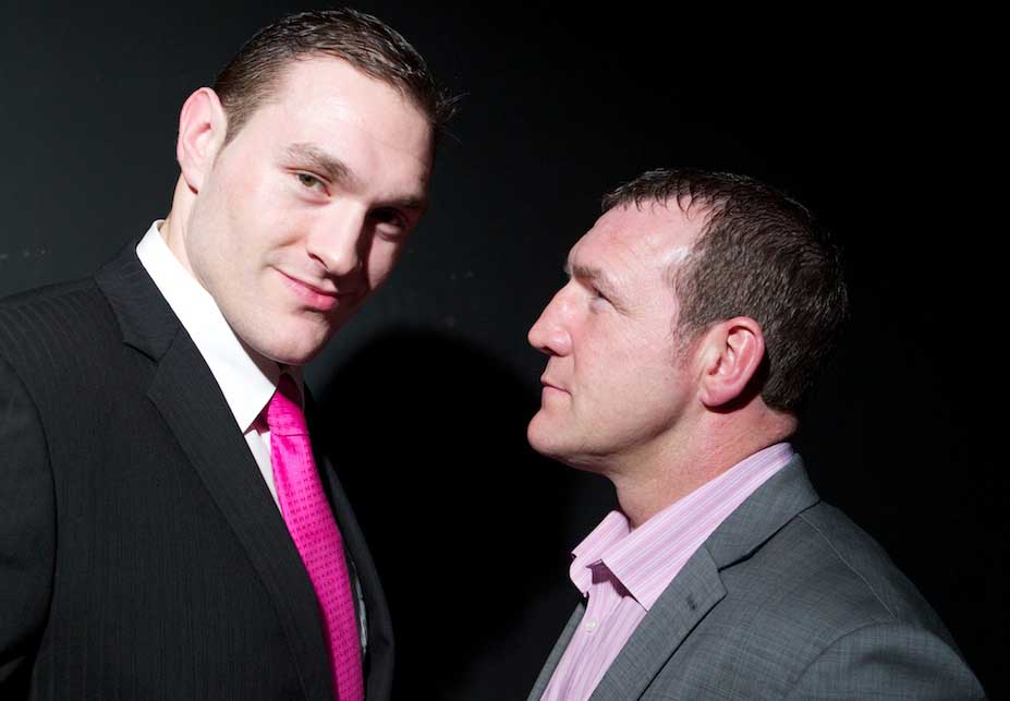 23-летний британский боксер Тайсон Фьюри (слева), бывший чемпион Британии и Британского содружества в супертяжелом весе, и другой бывший обладатель титула чемпиона Британского содружества 40-летний Мартин Роган. Эти боксеры встретятся на ринге 14 апреля в Белфасте (Северная Ирландия). (Фото: Hennessy Sports)