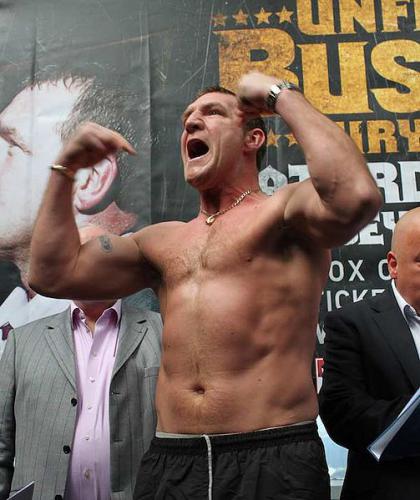 Вчера в Белфасте (Северная Ирландия, Великобритания) состоялась официальная церемония взвешивания участников боксерского шоу, главным событием которого станет поединок за вакантный титул чемпиона Ирландии в супертяжелом весе между 23-летним Тайсоном Фьюри и уроженцем Белфаста — популярным 40-летним боксером Мартином Роганом. Роган показал на весах 103,5 кг, Фьюри, рост которого составляет 206 см, выйдет на бой с весом в 111,5 кг, что является самым низким показателем за всю его профессиональную карьеру. Напомним, что еще недавно Тайсон Фьюри весил 146 кг: к такому результату его привела депрессия, вызванная серьезными проблемами со здоровьем у его 6-месячного сына. (Фото: Hennessy Sports)