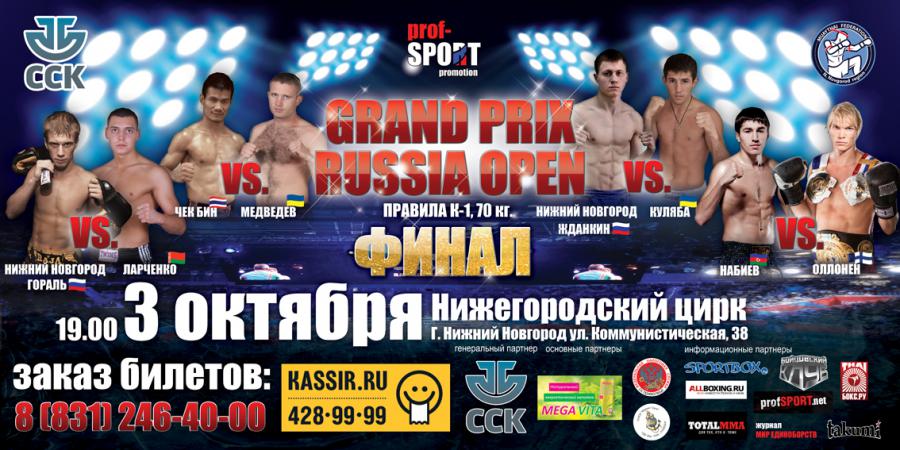 3 октября в Нижегородском цирке пройдет финал Grand Prix Russia Open (Gpro) в весовой категории до 70 кг. Четыре xемпиона уже доказали, что они достойны бороться за титулы самого высокого ранга и теперь им предстоит выяснить, кто из них лучший.