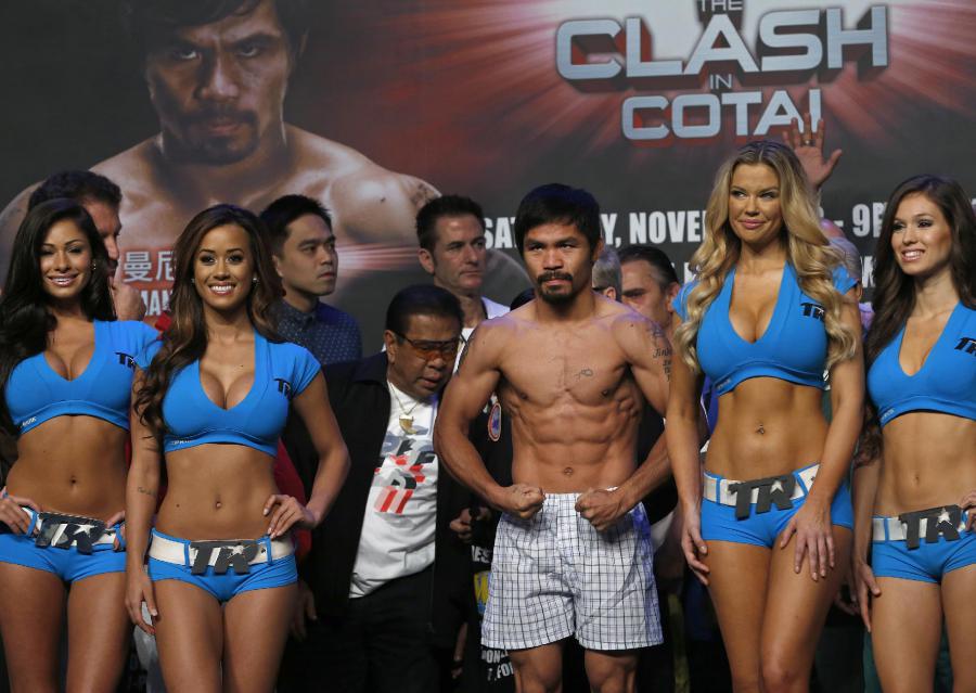 Только что в Макао прошла официальная процедура взвешивания участников завтрашнего боксерского шоу. Экс-чемпион в восьми весовых категориях 34-летний филиппинец Мэнни Пакьяо и его соперник 27-летний американец Брэндон Риос уложились в рамки полусреднего веса (147 фунтов/66,7 кг). Вес Пакьяо составил 145 фунтов (65,8 кг), а Риоса — 146,5 фунтов (66,5 кг). Чемпион IBF в полусреднем весе Евгений Градович показал на весах 125,75 (57 кг), а его соперник в матче-реванше Билли Диб — 126 фунтов (вторая попытка).
