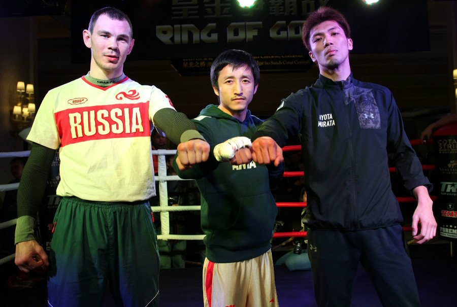 Вчера в Макао (Китай) состоялась открытая тренировка перед намеченным на 22 февраля вечером бокса с участием трех олимпийских чемпионов — китайца Цзоу Шимина, японца Риото Мураты и россиянина Егора Мехонцева. В рамках этого же вечера пройдет поединок между чемпионом мира по версии IBF в легком весе 27-летним мексиканцем Мигелем Васкесом и не имеющим поражений 28-летним российским боксером Денисом Шафиковым.