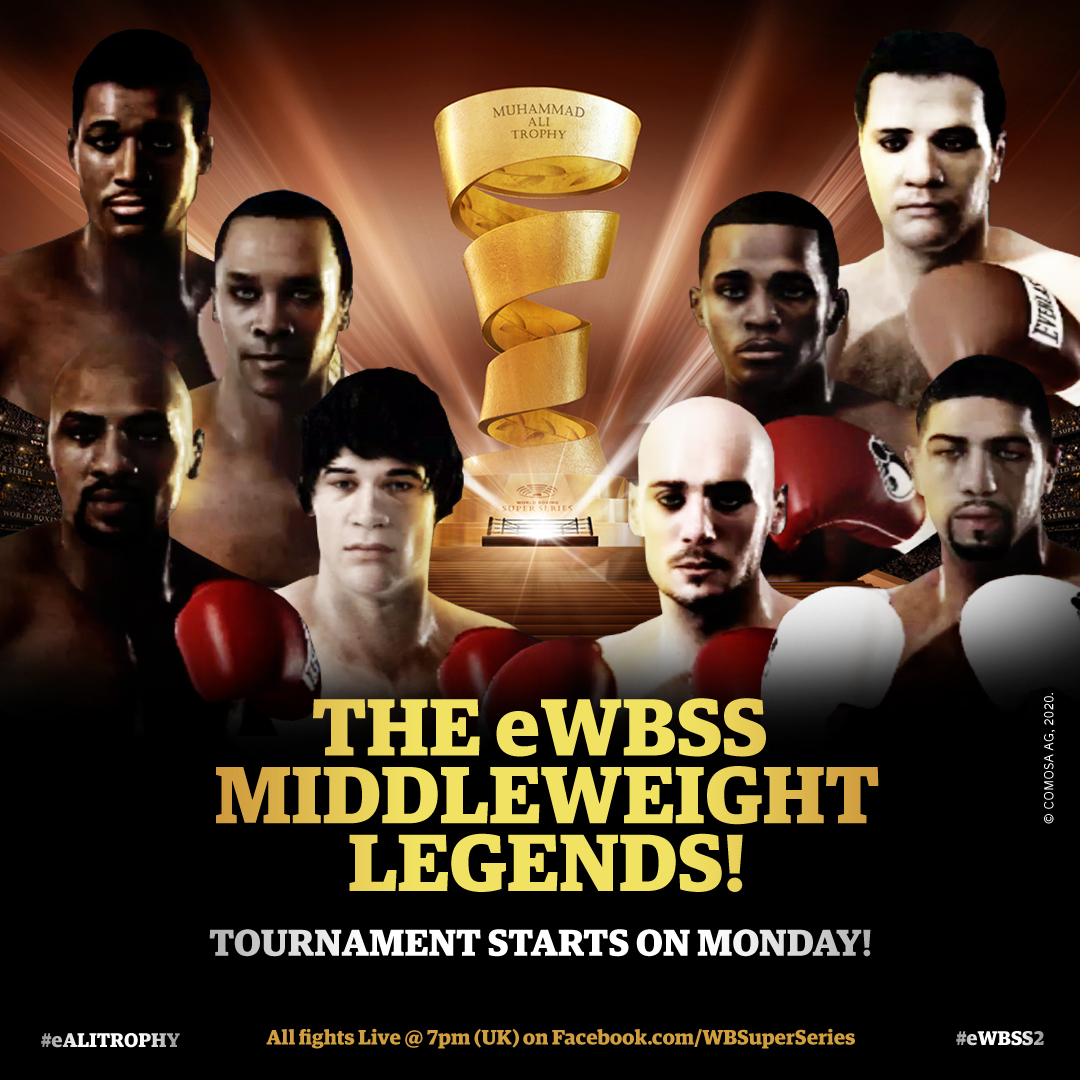 На этой неделе организаторы Суперсерии запустят виртуальный турнир в среднем весе eWBSS Middleweight Legends Tournament. Его участниками станут персонажи Шугара Рэя Робинсона (1 сеяный), Шугара Рэя Леонарда (2), Марвина Хаглера (3), Карлоса Монзона (4), Джейка Ламотты, Рональда Райта, Келли Павлика и Фернандо Варгаса. Первый бой между Робинсоном и Варгасом пройдет в понедельник. Симуляцию боя можно будет посмотреть на facebook.com/WBSuperSeries.