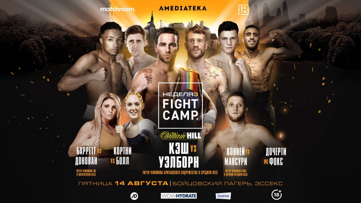 В эту пятницу, 14 августа, состоится очередной турнир в рамках Matchroom Fight Camp, который проводится под брендом DAZN. Сразу три боя вечера имеют статус чемпионских поединков. Кирон Конвей и Навид Мансури побьются за пояс WBA в первом среднем весе, победитель встречи Баррет-Донован станет чемпионом во втором полулегком весе по версии IBF, а в главном бою сойдутся Феликс Кэш и Джейсон Уэлборн – у них на кону чемпионский пояс Содружества в среднем весе.