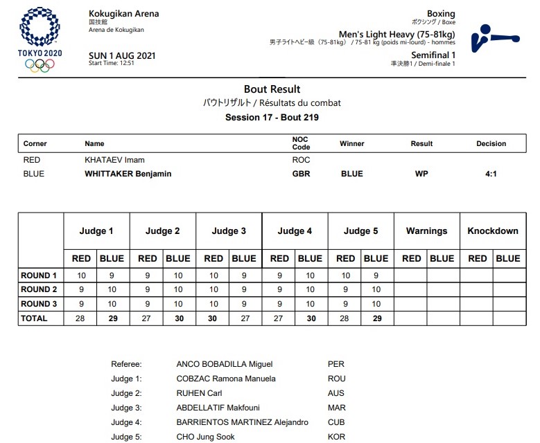 Имам Хатаев сегодня, 1 августа, первым из российских боксеров вышел на ринг в Токио. В полуфинальном поединке в весовой категории до 81 кг он уступил раздельным решением судей боксеру из Великобритании Бенджамину Уитейкеру со счетом 1-4 (30-27, 28-29, 28-29, 27-30, 27-30) и стал обладателем бронзовой медали Олимпийских игр в Токио.
