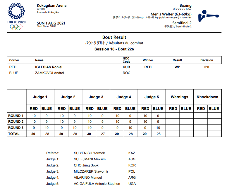 Российский боксер Андрей Замковой сегодня в Токио не сумел выйти в финал Олимпиады, проиграв единогласным решением судей кубинскому боксеру Рониэлю Иглесиасу и завоевав таким образом бронзовую медаль Олимпийских игр в Токио.