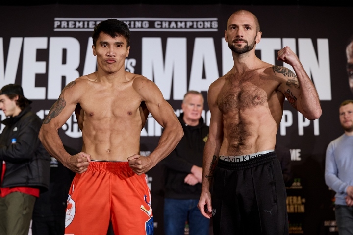Доминиканец Майкл Ривера показал на весах 61 кг, а американец Фрэнк Мартин — 61,12 кг перед отборочным поединком по версии WBA в легком весе.